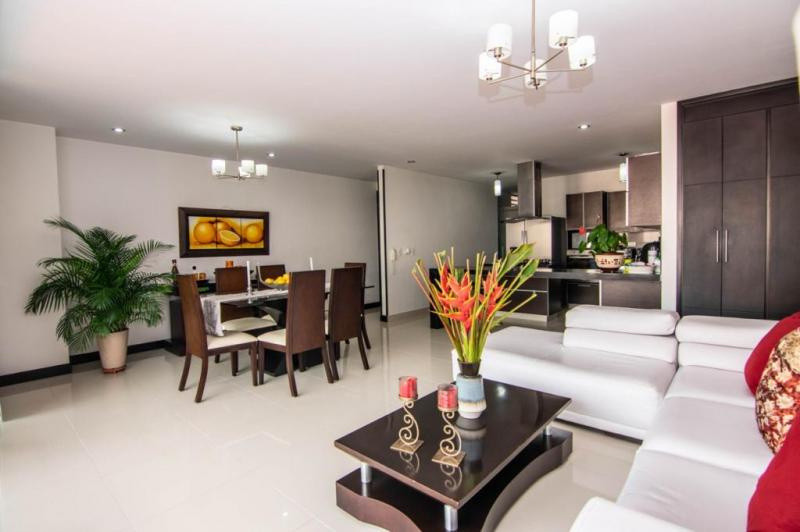 VENDO hermoso y amplio apartamento, con excelente ubicación,buen clima, área 157M2, sala, comedor independiente, cocina abierta con isla, pisos de porcelanato, 3 cómodas habitaciones con closet, y habitación de servicio con baño, 5 baños, 4 piso con ascensor, balcón con excelente vista hacia la ciudad, dos parqueaderos paralelos amplios cubiertos con deposito bien amplio. piscina climatizada,baño turco,salón social con amplia cocina y accesorios y baños amplios, cancha de squash, gimnasio,guardería, parque Y infantil, sauna, y seguridad 24 horas, 7 años de construido, PRECIO VENTA $660.000.000 / $600.000 administración precio para este año. dos torres de 4 apartamentos por piso, dos ascensores.